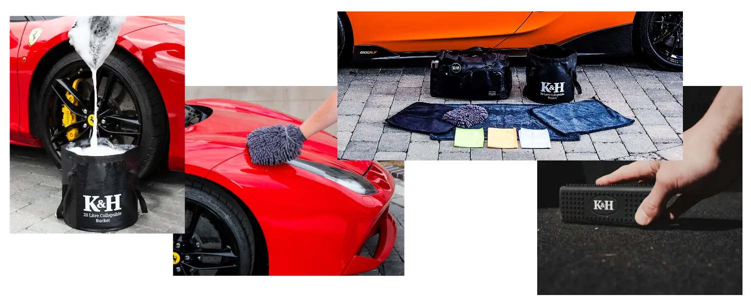 A 15-piece premium car cleaning kit contained in a compact travel bag for the car enthusiast looking for a showroom shine.